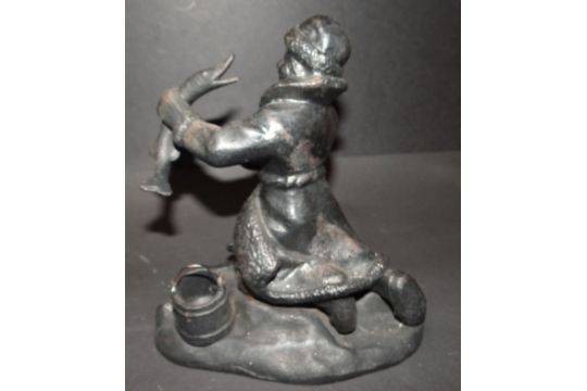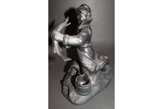 russische Gusseisen-Figur, Jemeljan mit dem Hecht, wohl Kasli ?, H-17 cm, 15,5x10 cm [1]