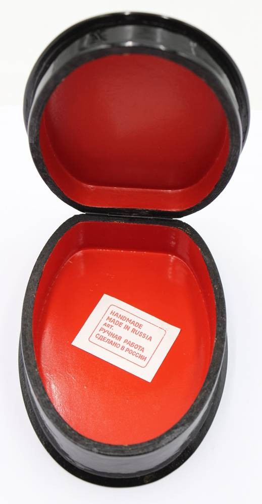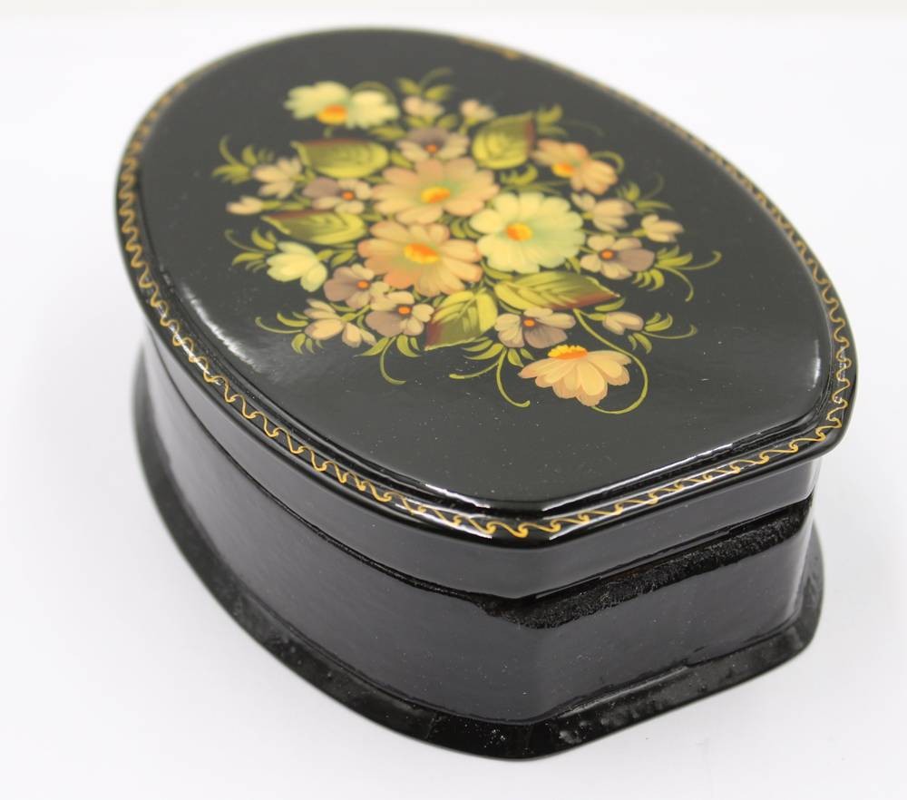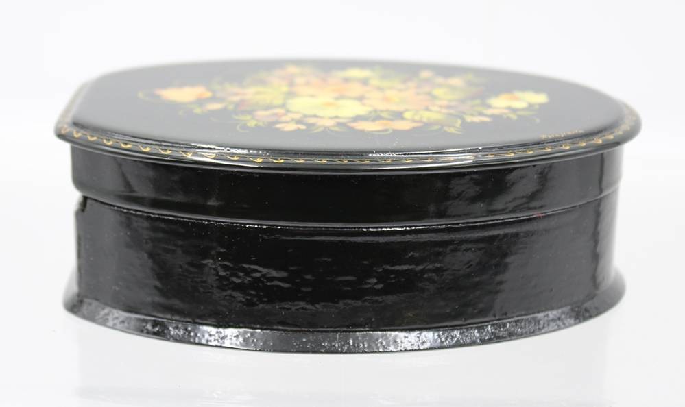 russische Lackdose, florales Dekor, ca. H-4,4cm B-13,5cm [1]