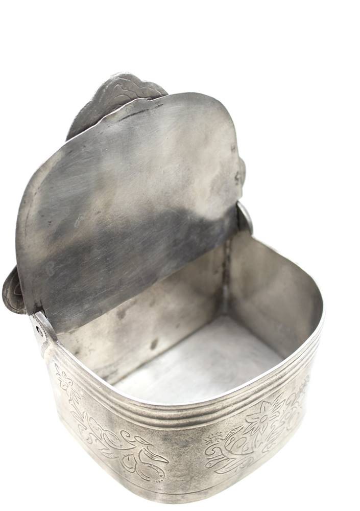 Salzgefäß, Zinn, datiert 1814, Deckel mit Sinnspruch, Ulm, aus der Zeit ?, ca. H-16cm B-13cm T-8,5cm