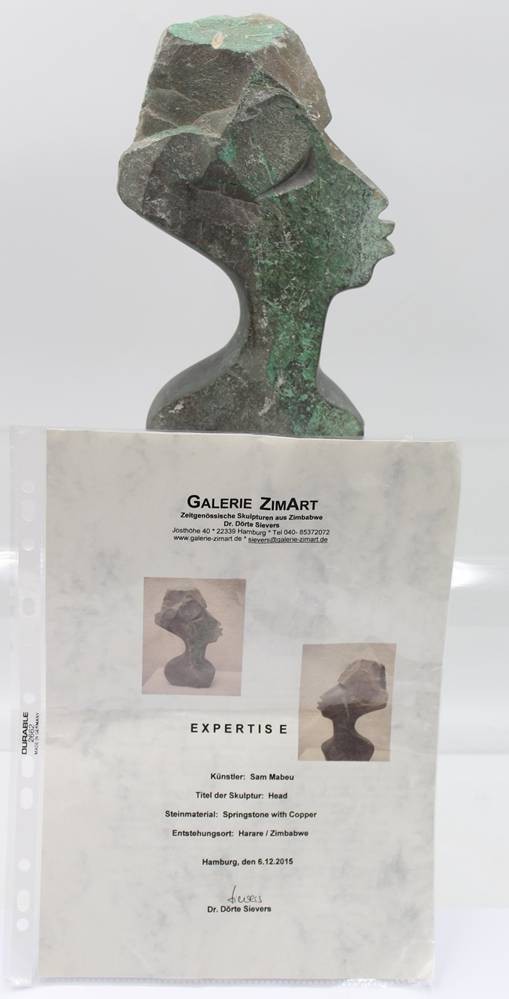 Sam Mabeu (1977) Zimbabwe "Head" betitelte Steinskulptur, mit Expertise Galerie ZimArt, Dr. Dörte Sievers, 2015, H-26 cm [1]