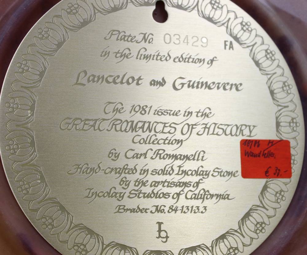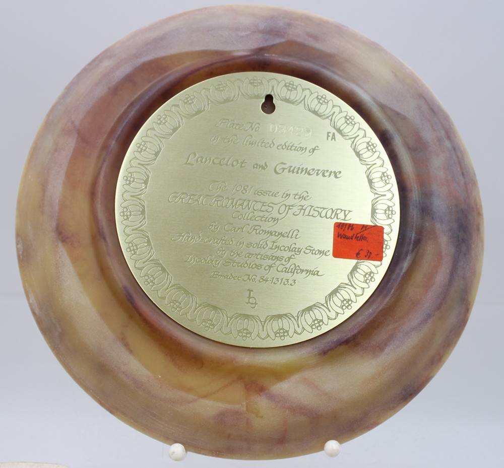 Sammelteller aus Incolay-Stein mit der Darstellung von Lancelot und Guinevere, Entw. Carl Romanelli, ca. D-26cm [1]