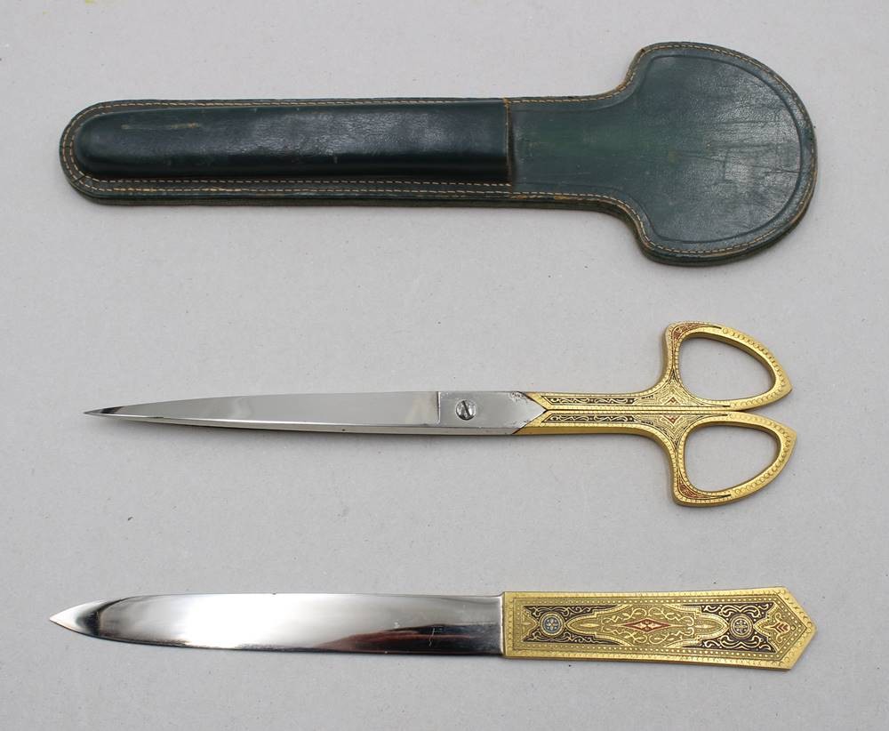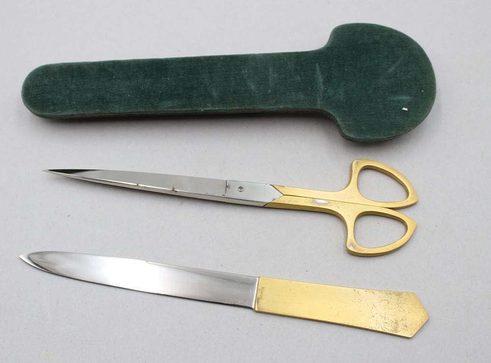 Schere und Brieföffner, Lederetui, ca. L-26cm