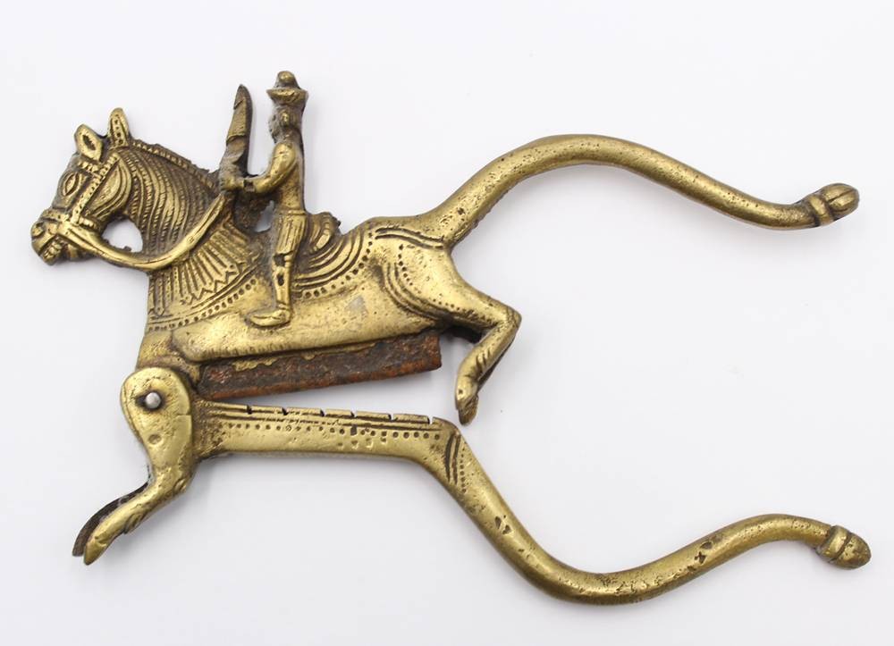 schöner antiker Betelschneider, Indien, Bronze, Reiter zu Pferd, L-16cm [1]