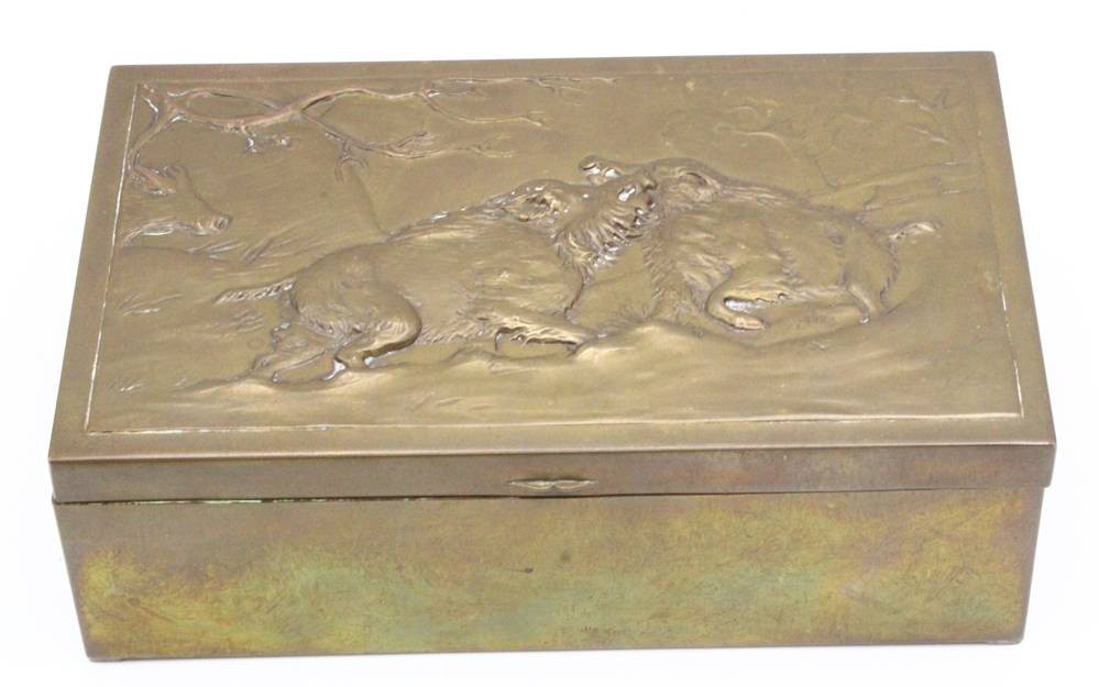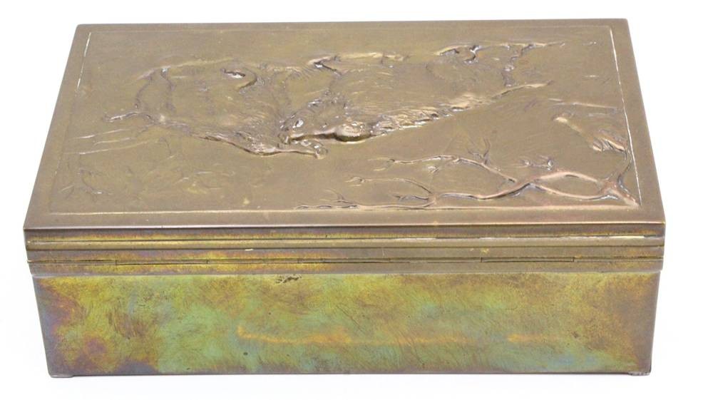 schwere Zigarrendose, Messing "WMF" Straussenmarke, Holzgefüttert, H-7 cm, 13x21 cm