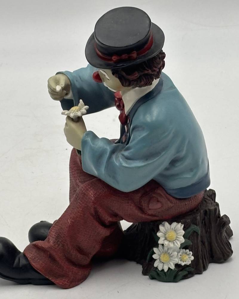 sitzender Clown "Sie liebt mich, sie liebt mich nicht.." von Gilde, H-18 cm