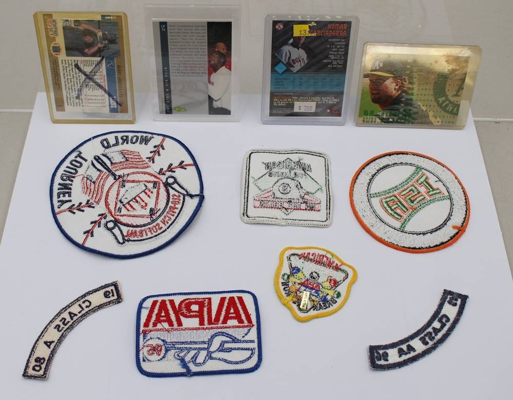 Sportkonvolut, 4x Sammelkarten und 7x div. Stoffaufnäher, USA [1]