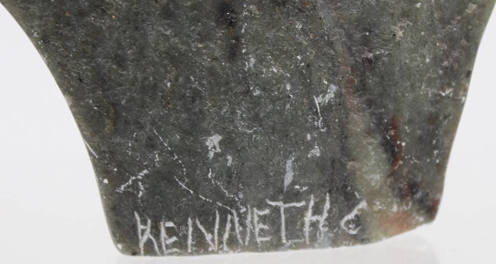 Steinkopf, signiert "Kenneth" ?, Bildhauerarbeit, 14x14 cm [1]