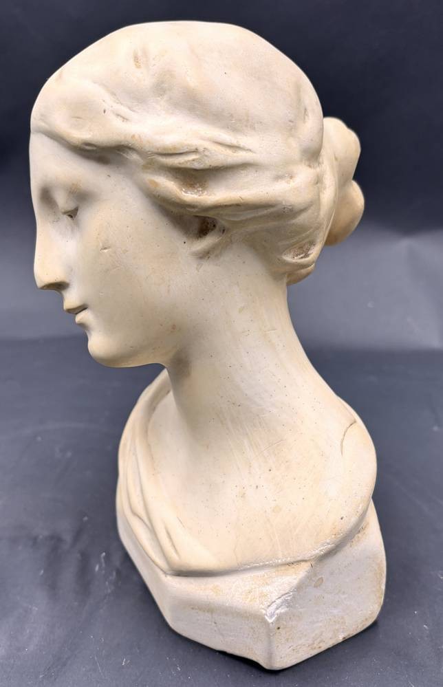 Stuck Frauenbüste "Madonna von Rimini" betitelt verso, H-20 cm