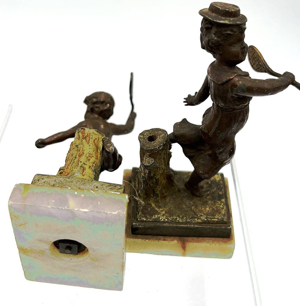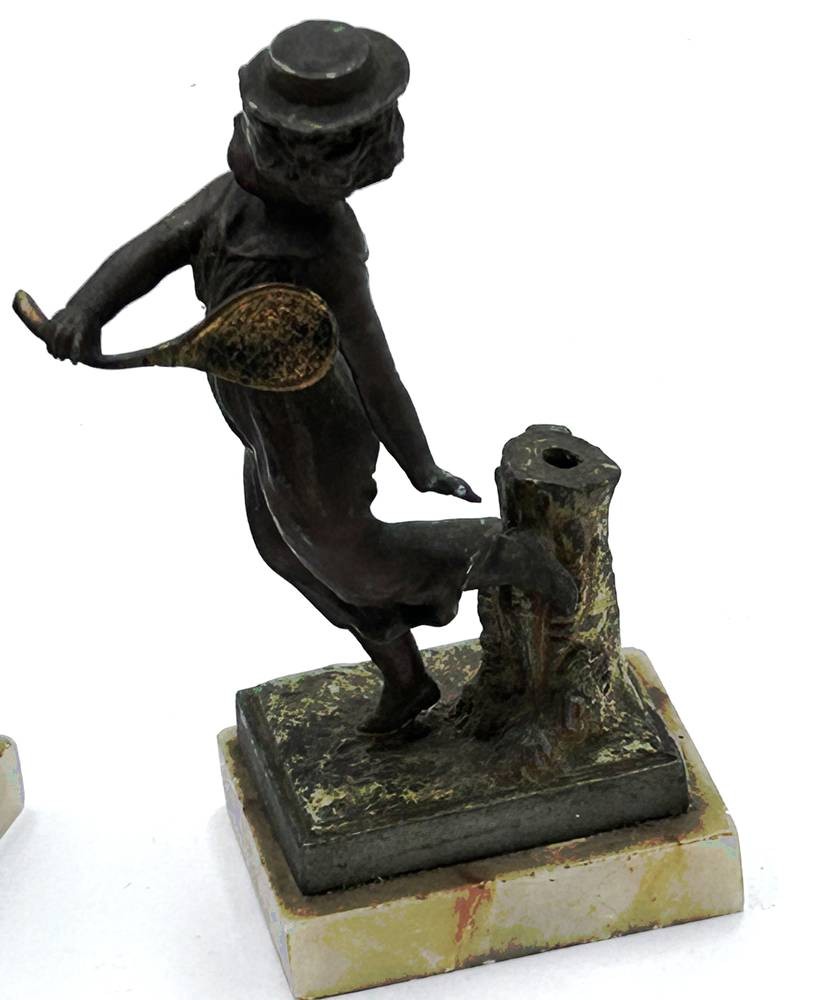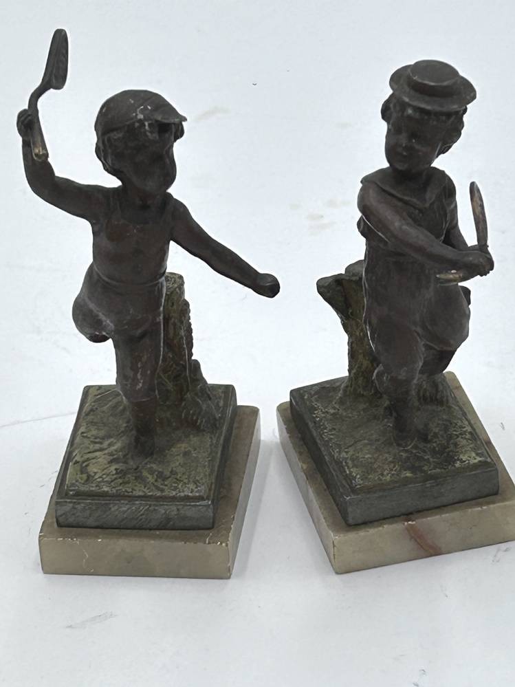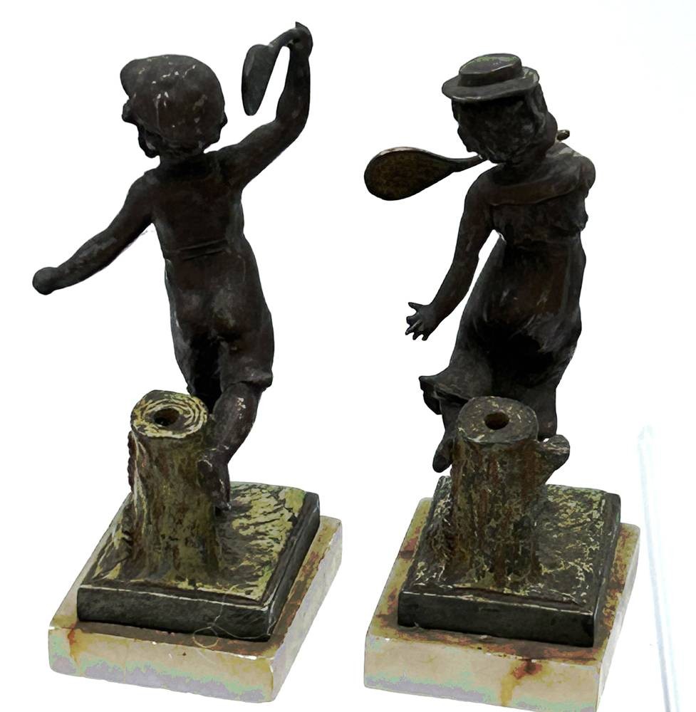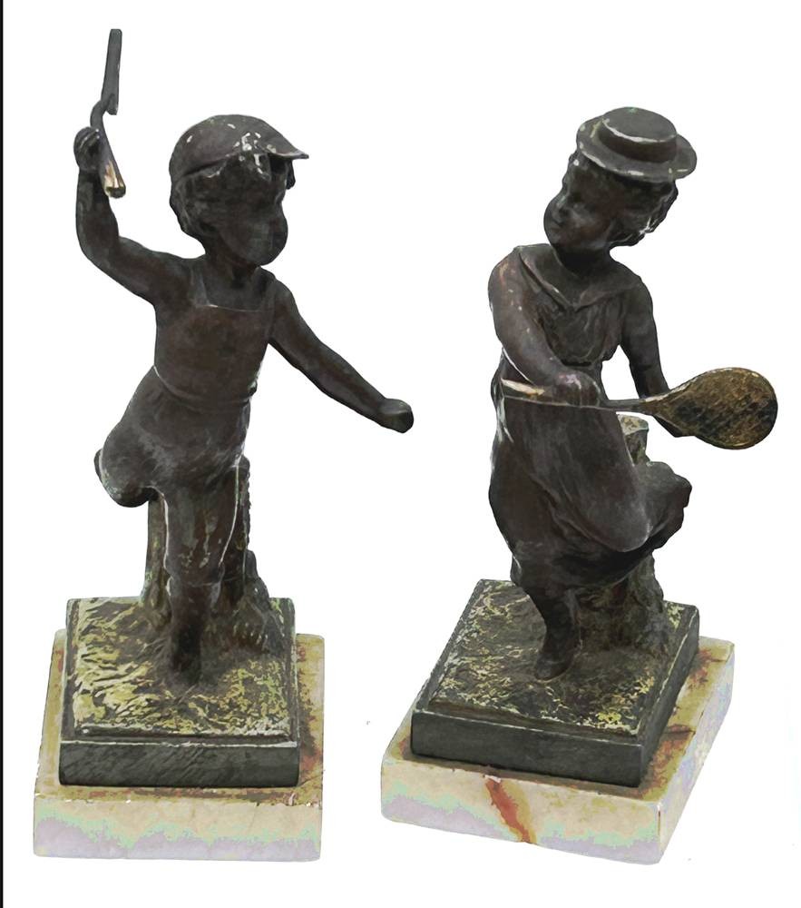 Tennisspielendes Kinderpaar, Bronze auf Marmorsockel, H-max 12 cm [1]