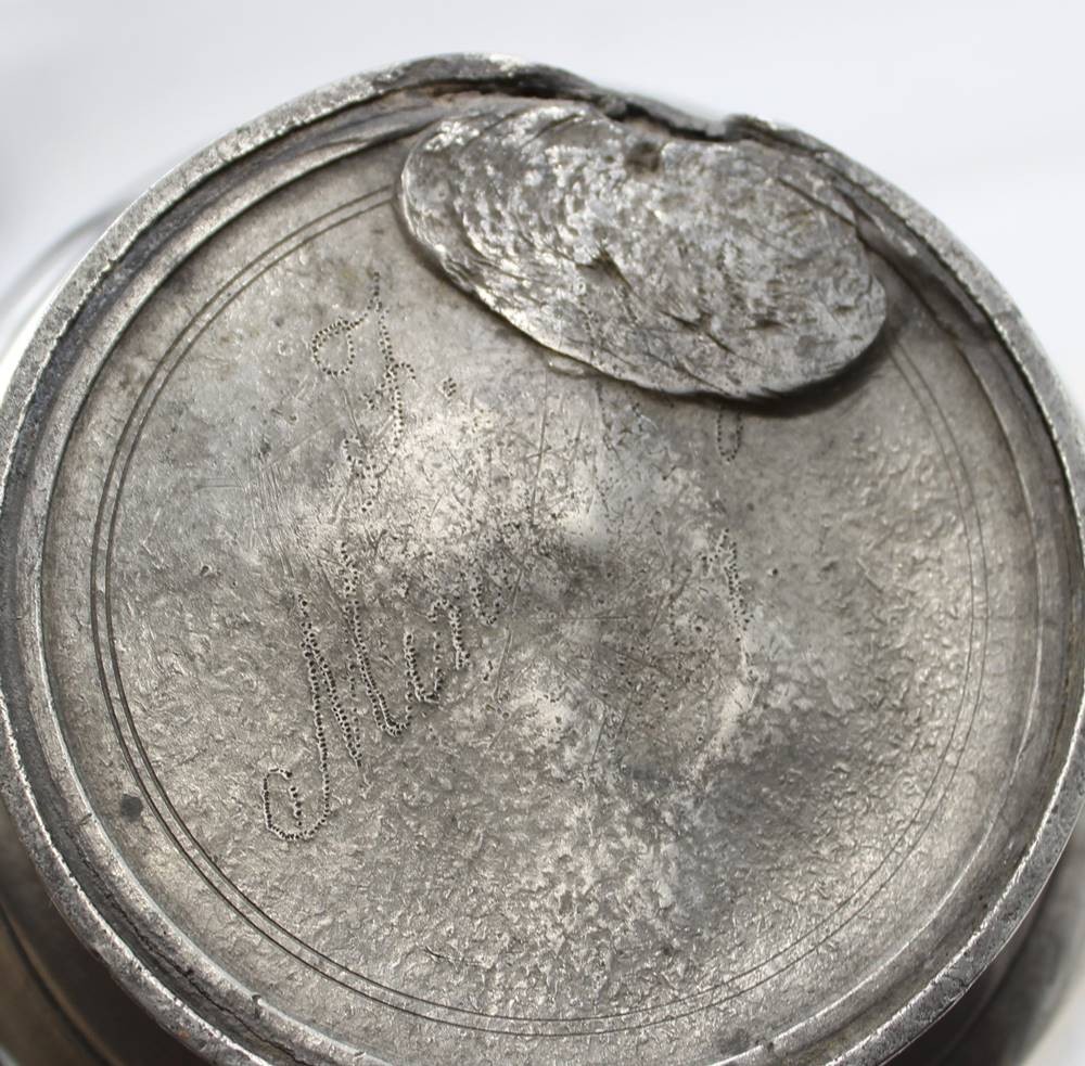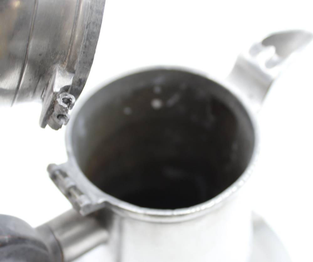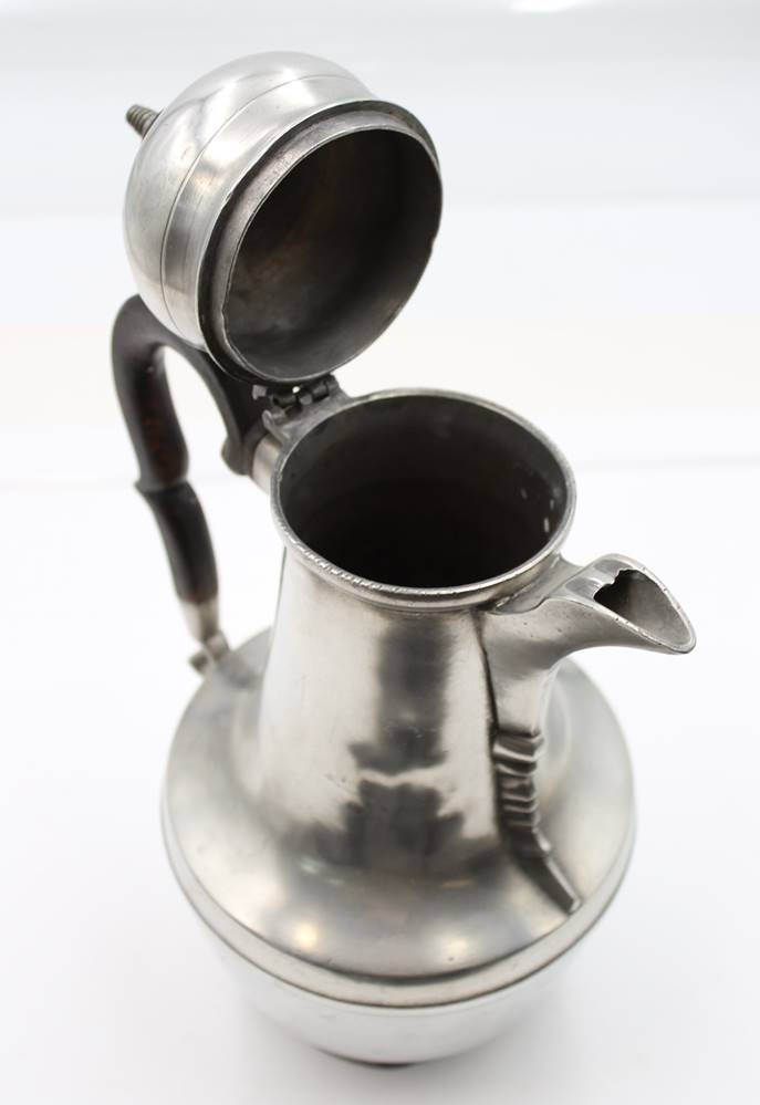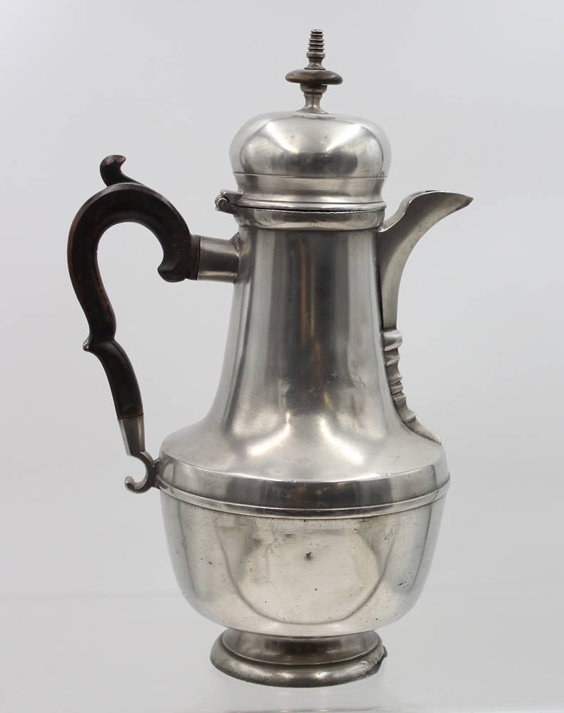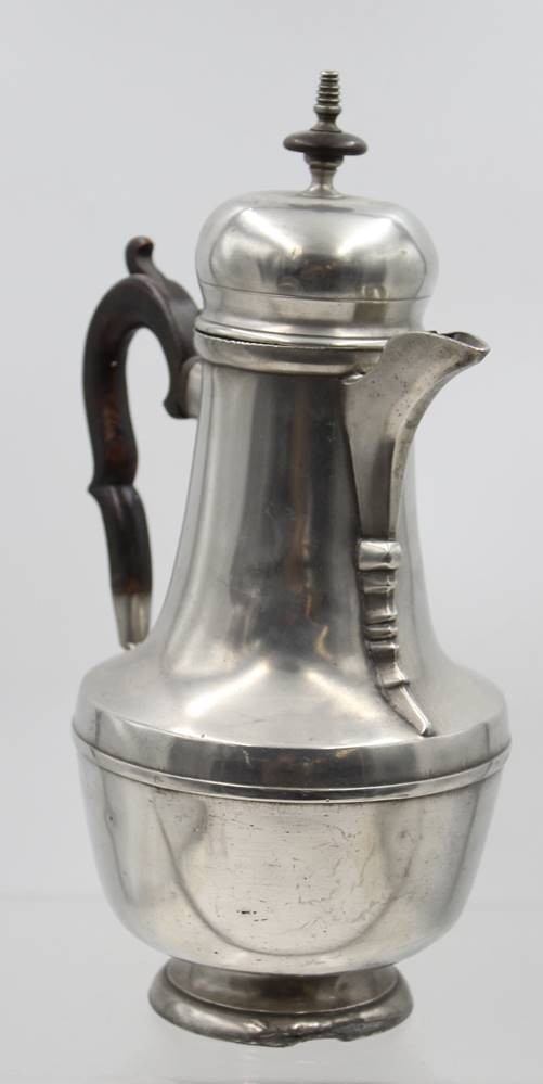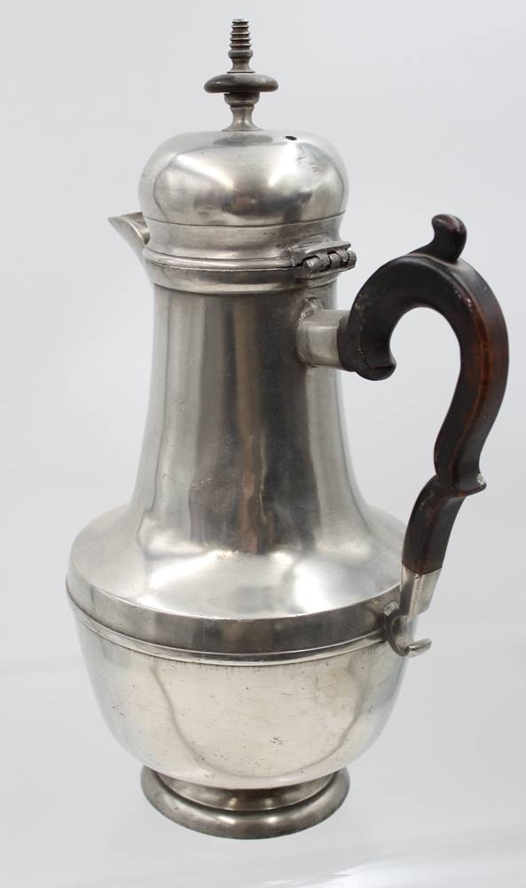 Türkenkopf-Kaffeekanne, Zinn, 19. Jhd., Deckel lose, an Stand Restauration, Holzgriff, ca. H-31,5cm [1]
