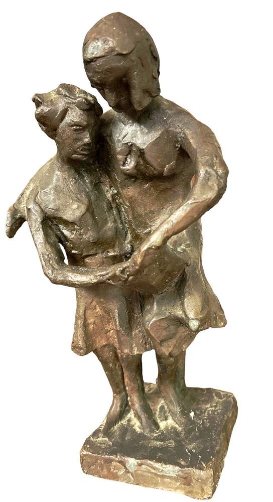 unleserl. signierte Bronze, Junges Paar, H-32 cm