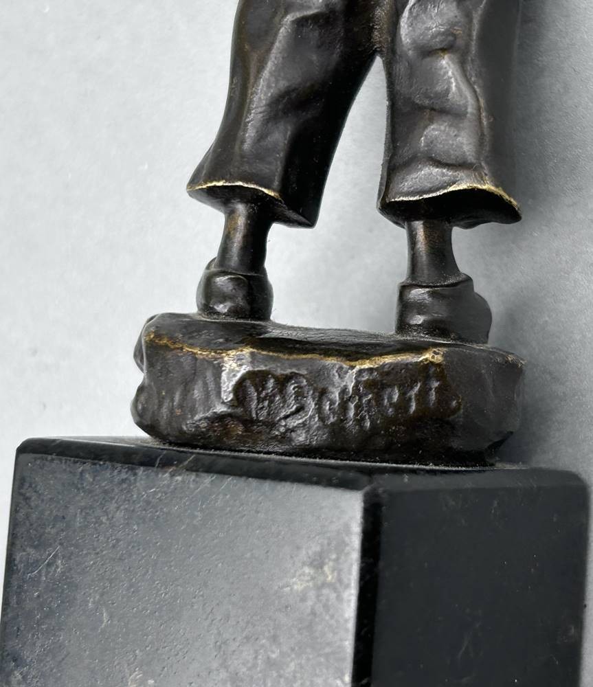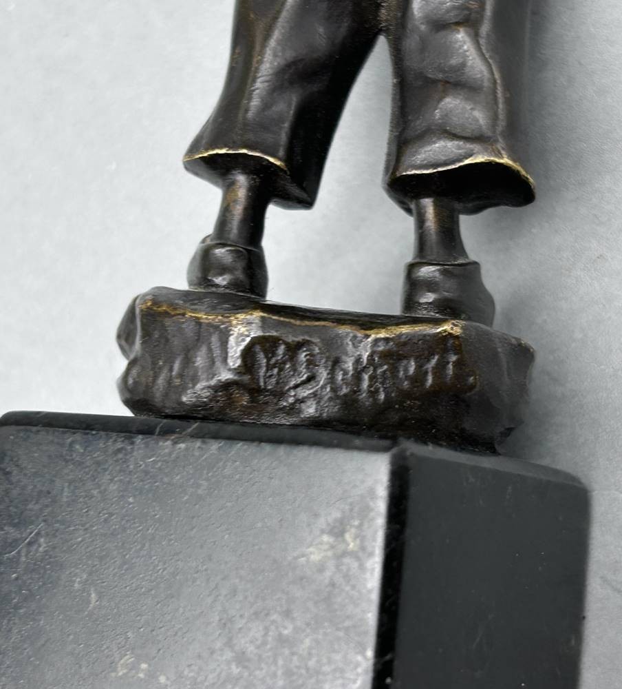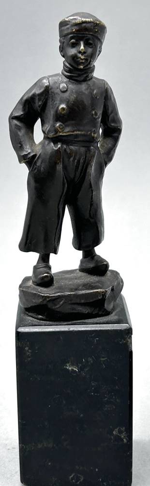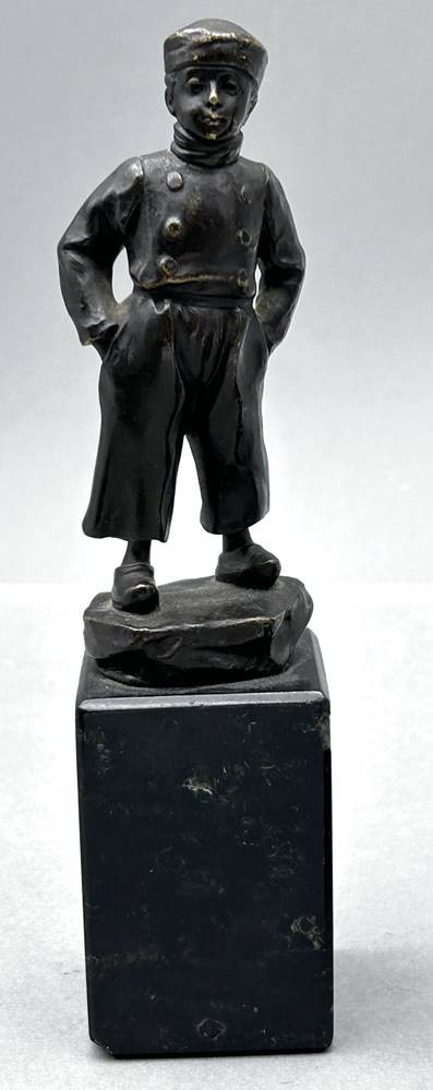 unleserl. signierte kl. Bronze auf Marmorsockel (dieser mit kl. Chips), Holland-Junge, H-komplett 19 cm [1]