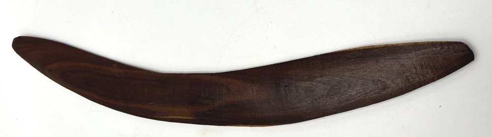vintage australischer Bumerang, eine Seite beschnitzt mit Känguruhs, L-44 cm