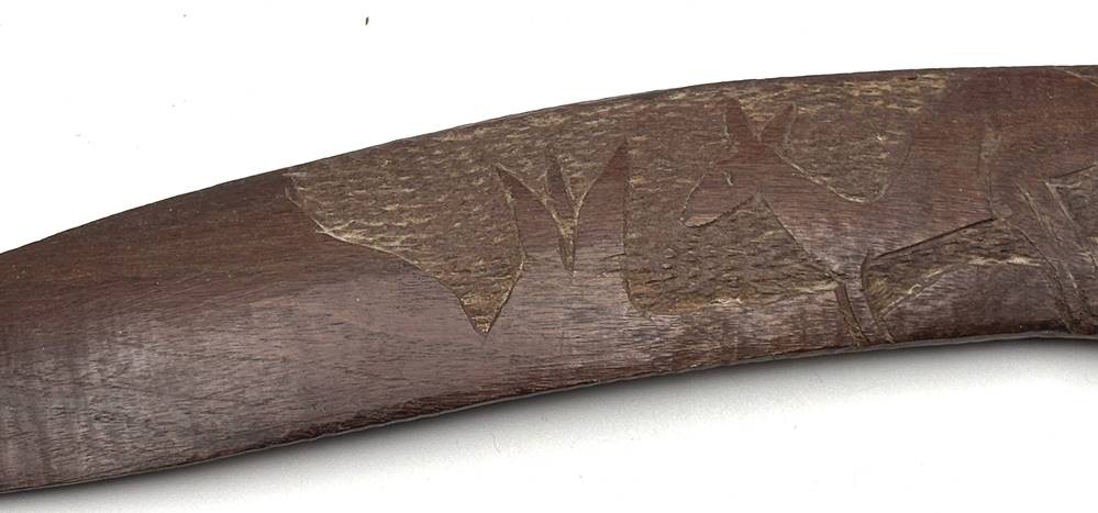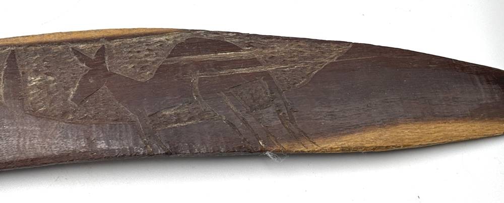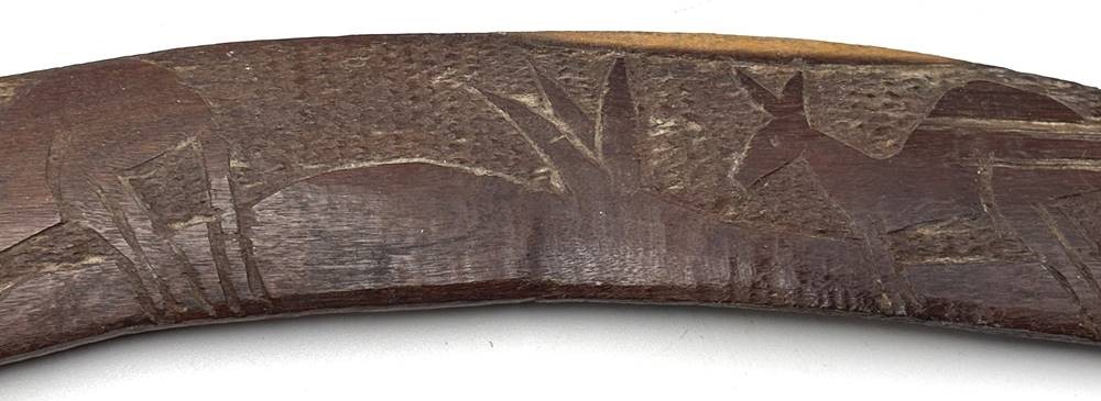 vintage australischer Bumerang, eine Seite beschnitzt mit Känguruhs, L-44 cm [1]