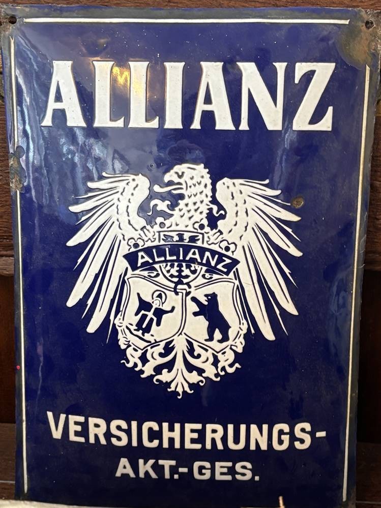 vintage Blechschild "Allianz Versicherung A.G.", tw. beschlagen und Altersspuren, ca 41x29 cm [1]