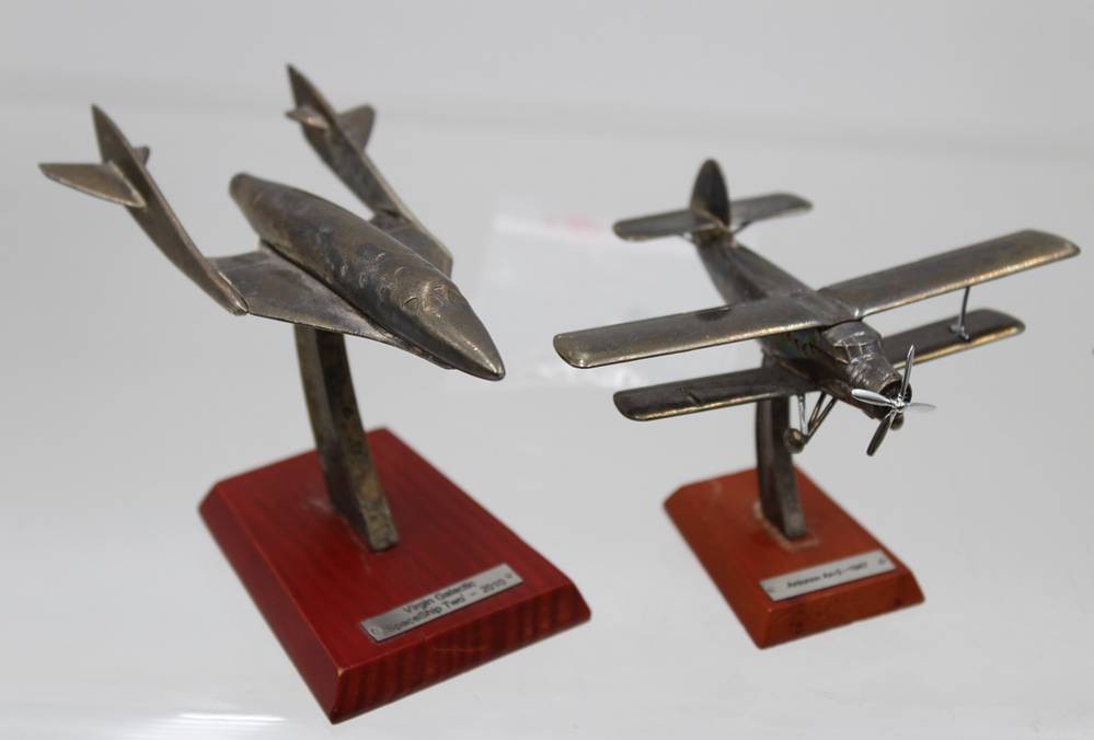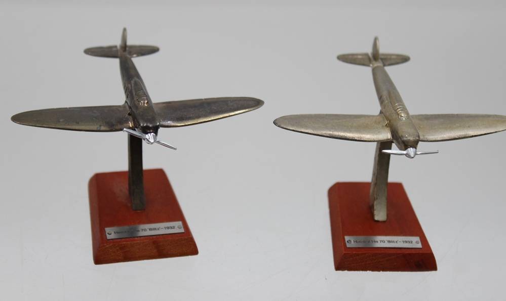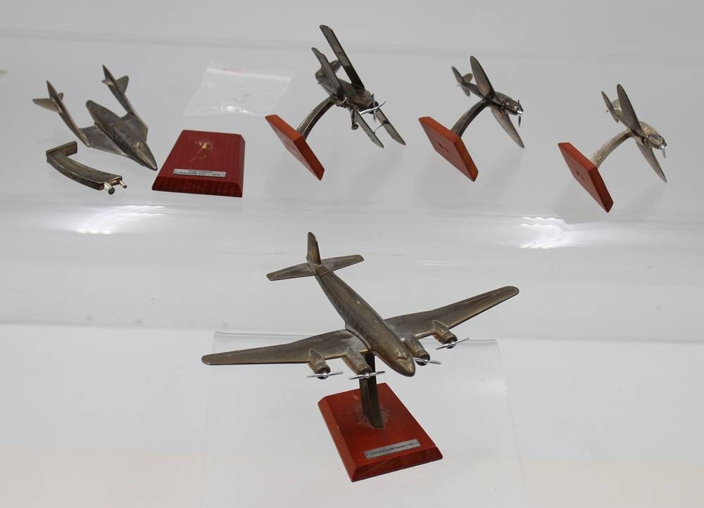 Vintage-Flugzeugmodelle aus Metall auf Holzsockeln, Silver Classics, ca. ca. H-6,5cm L-ca. 6 bis 11,5cm [1]