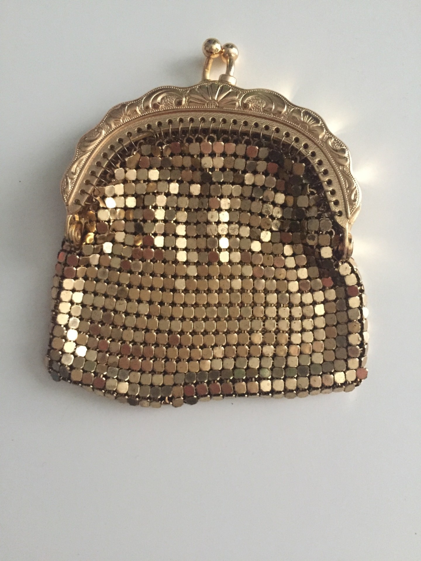 Losnummer - Vintage Mesh Geldbörse Gold – 60er Jahre Portemonnaie mit Bügelverschluss
