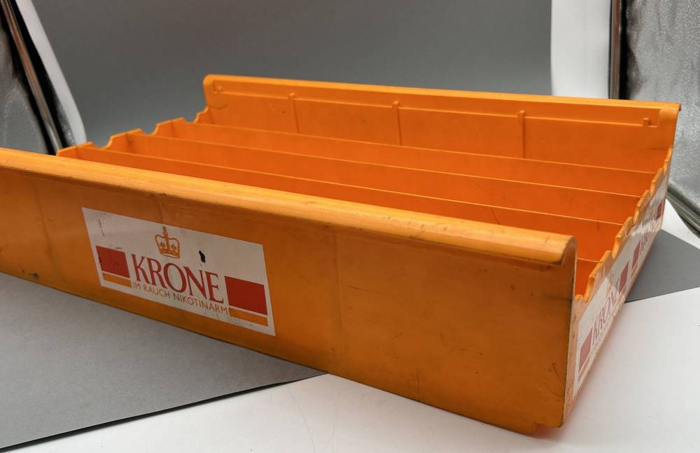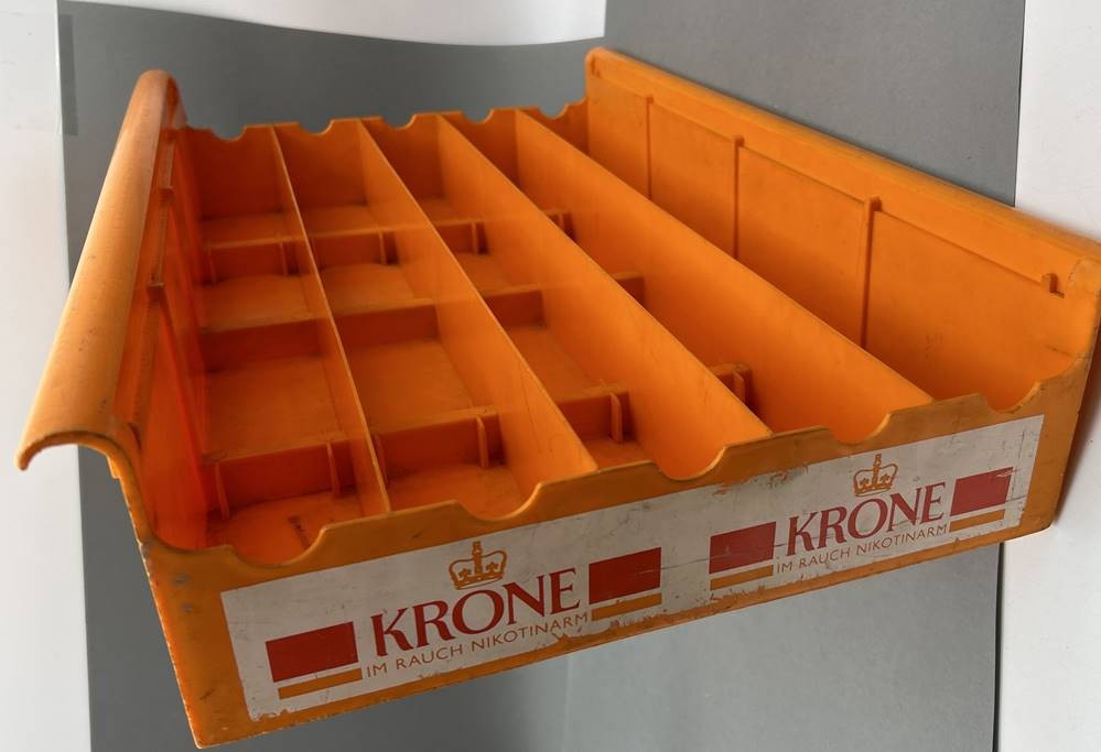 Vintage Tresenregal "Krone" Zigaretten, orange, Kunststoff, 70-er Jahre, 38x60x12 cm [1]