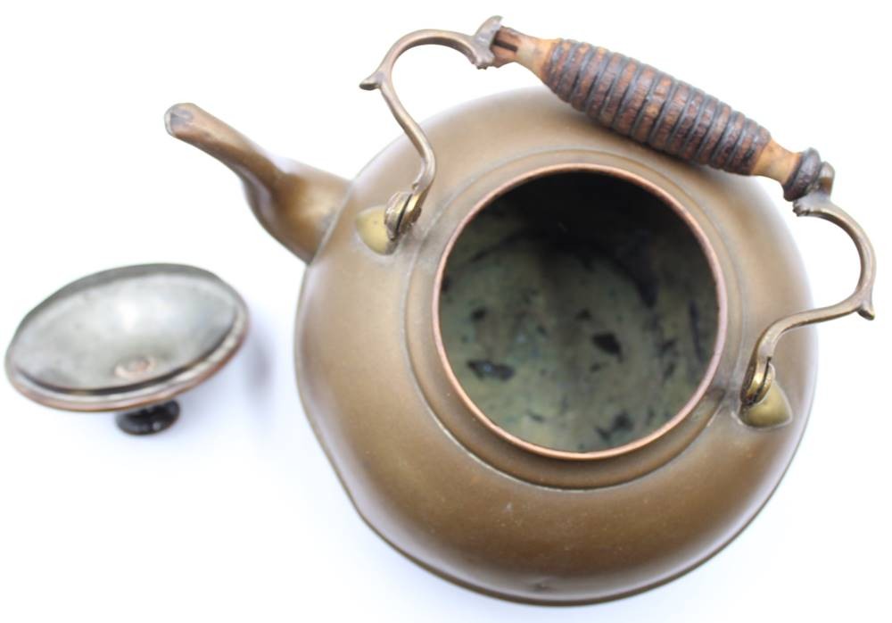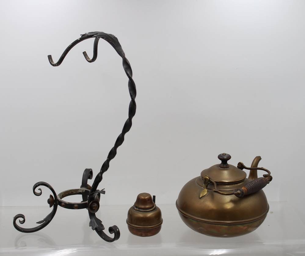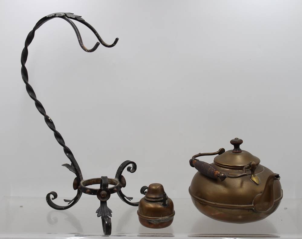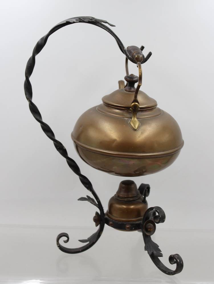 Wasserkessel in Halterung mit Brenner, Kupfer/Schmiedeeisen, H-37 cm [1]
