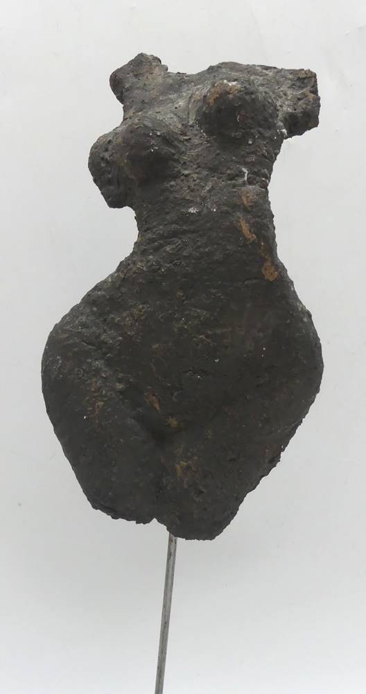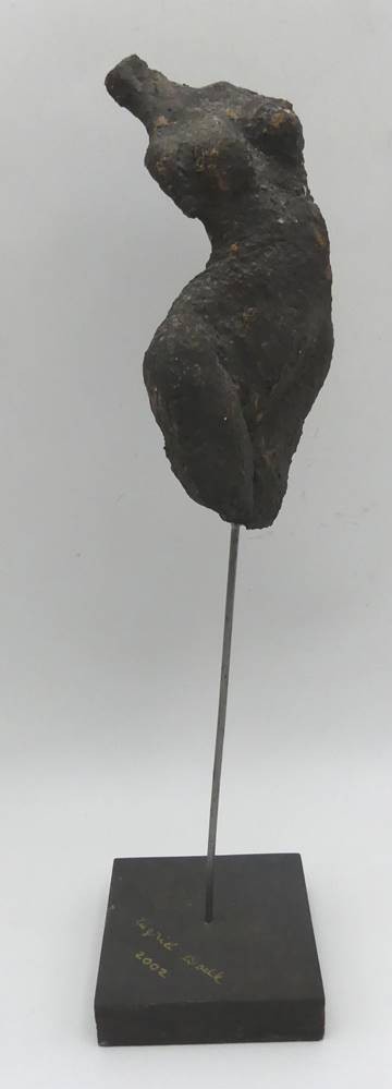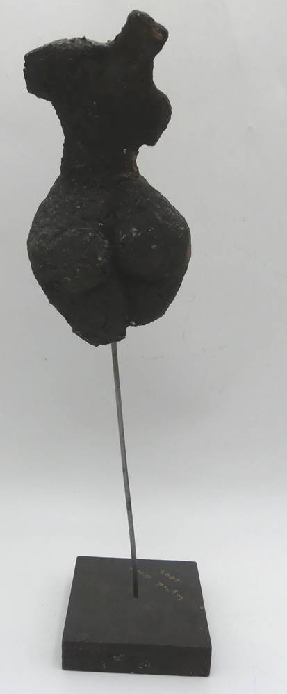 weiblicher Torso, sign, Ingrid Wölk, 2002, Ton auf Holzständer, H-33 cm [1]