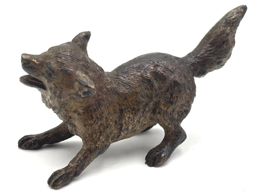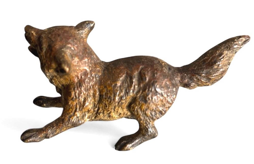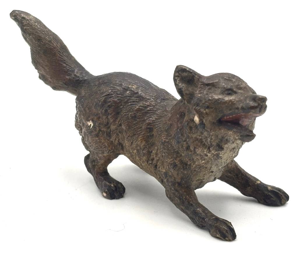 Wiener Bronze "bellender Hund" Reste alter Fassung, H-3 cm, L-7 cm [1]