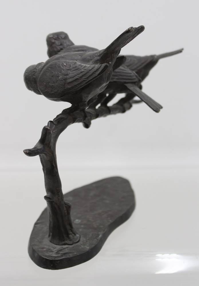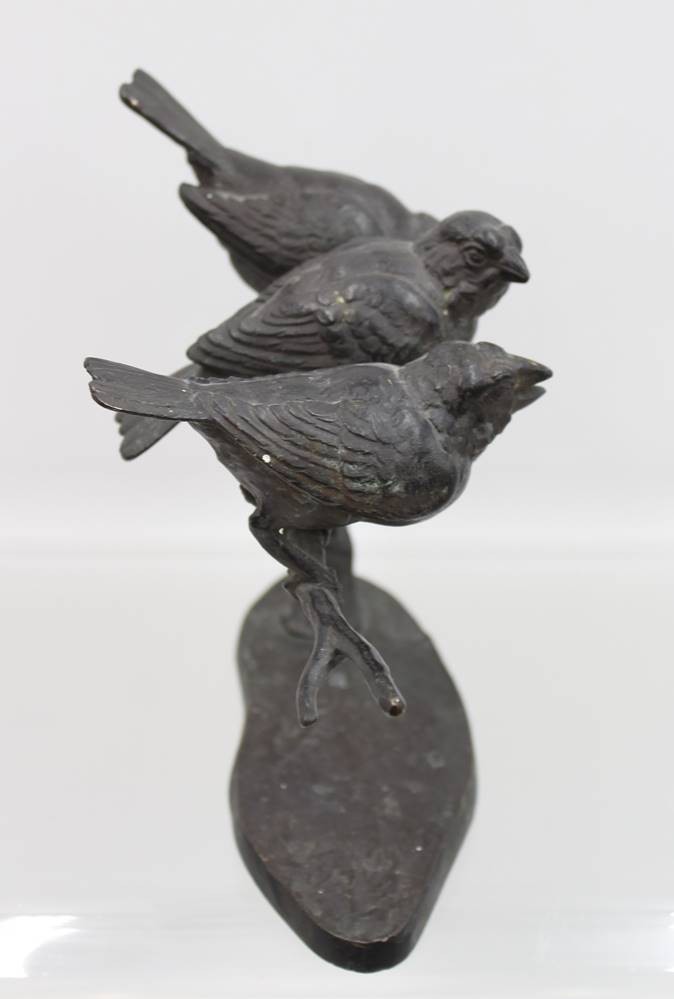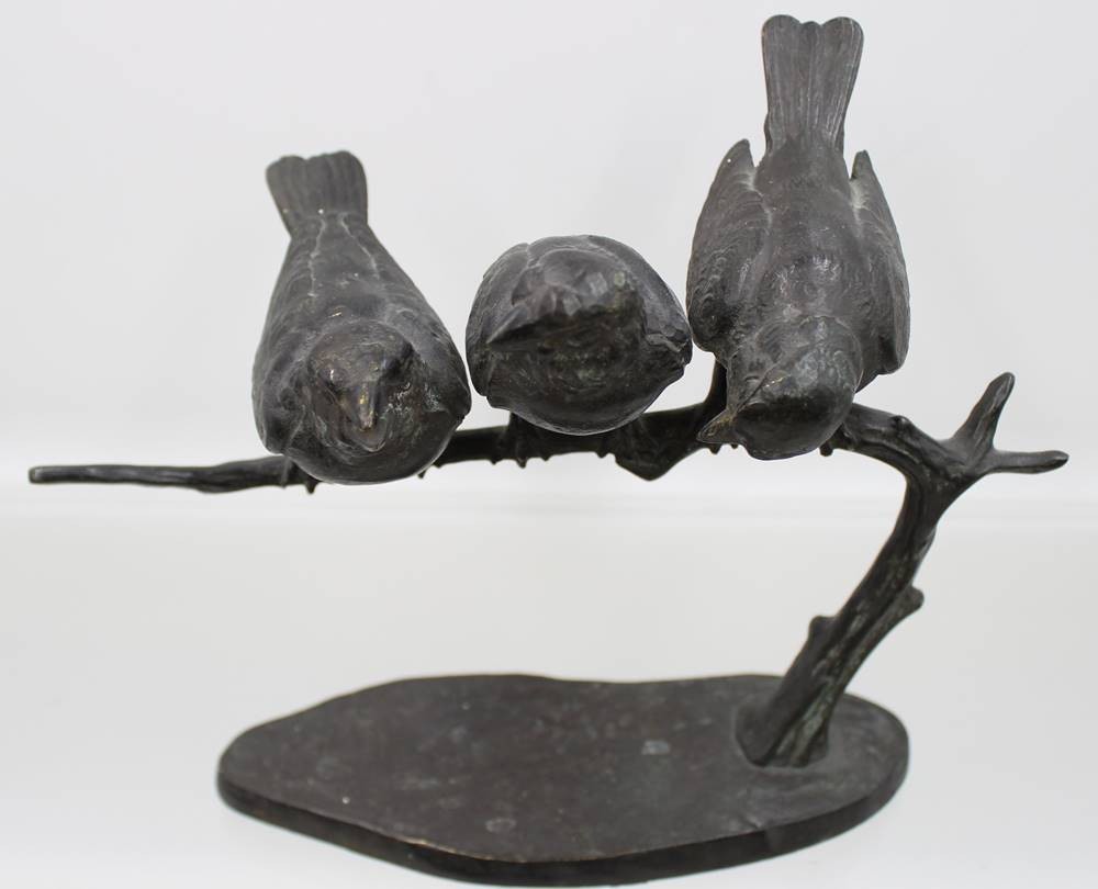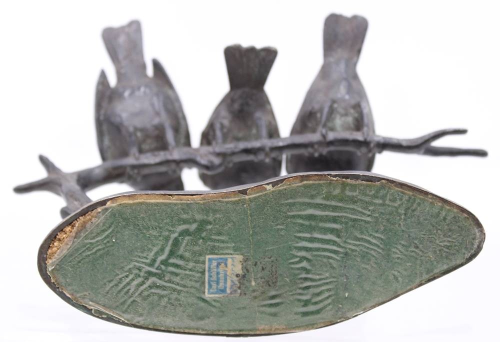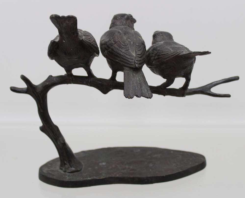 Wilhelm Karl Robra (deutsch, 1876-1945), drei Vögel auf Ast, Bronze geschwärzt, sign., ca. H-19cm B-23cm [1]
