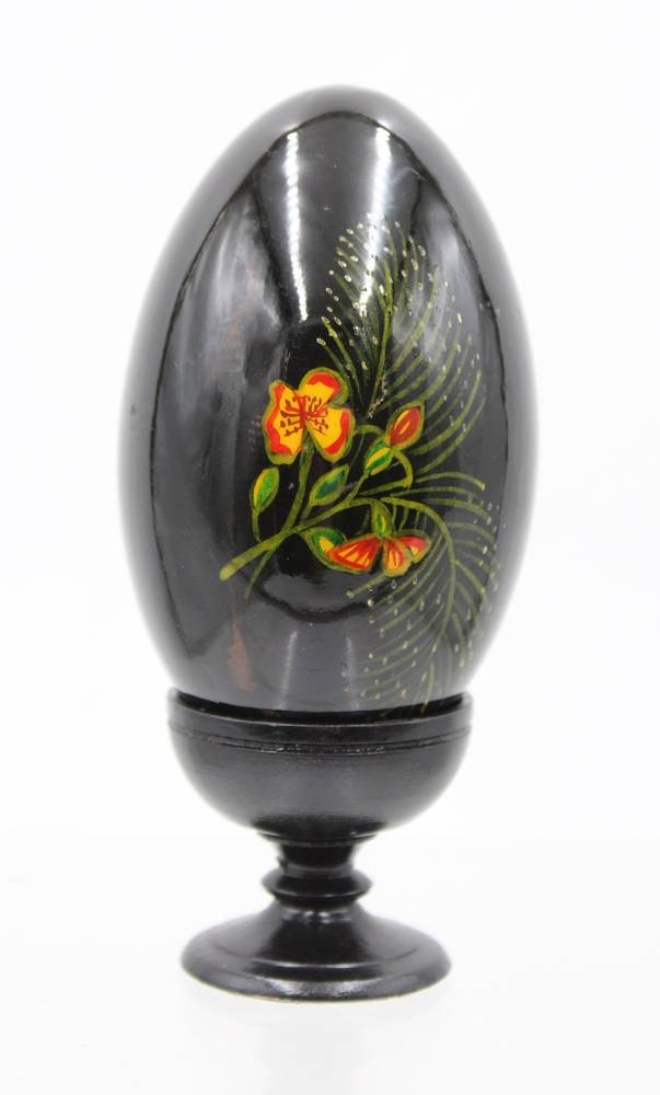 wohl handbemaltes ukrainisches Osterei, bekannt als Pysanka, auf Stand, 2 kl. Abriebstellen, ca. H-13cm [1]