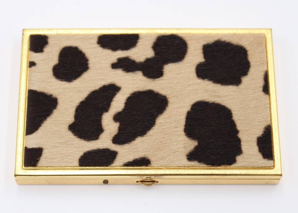Zigarettenetui, wohl 60er Jahre, Deckel mit Echtfell?, Leopardenmuster, ca. 10 x 6,5cm