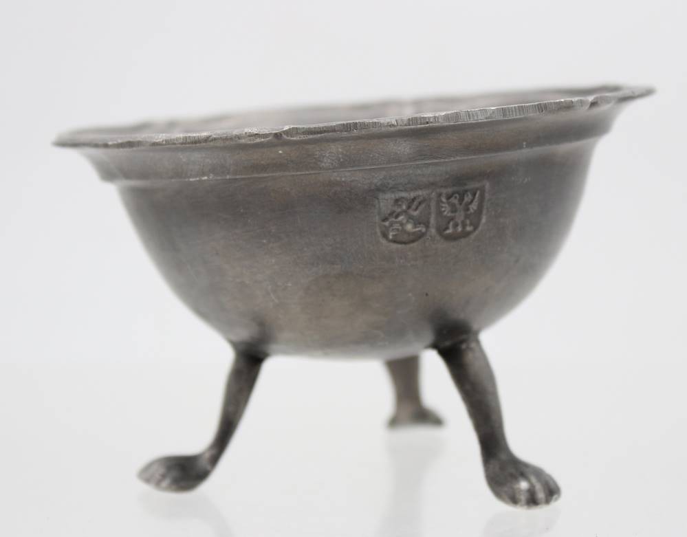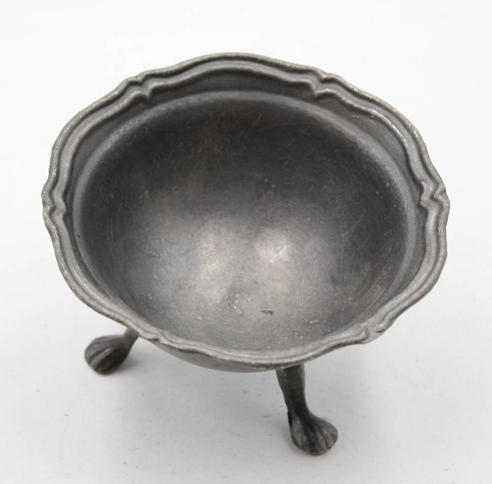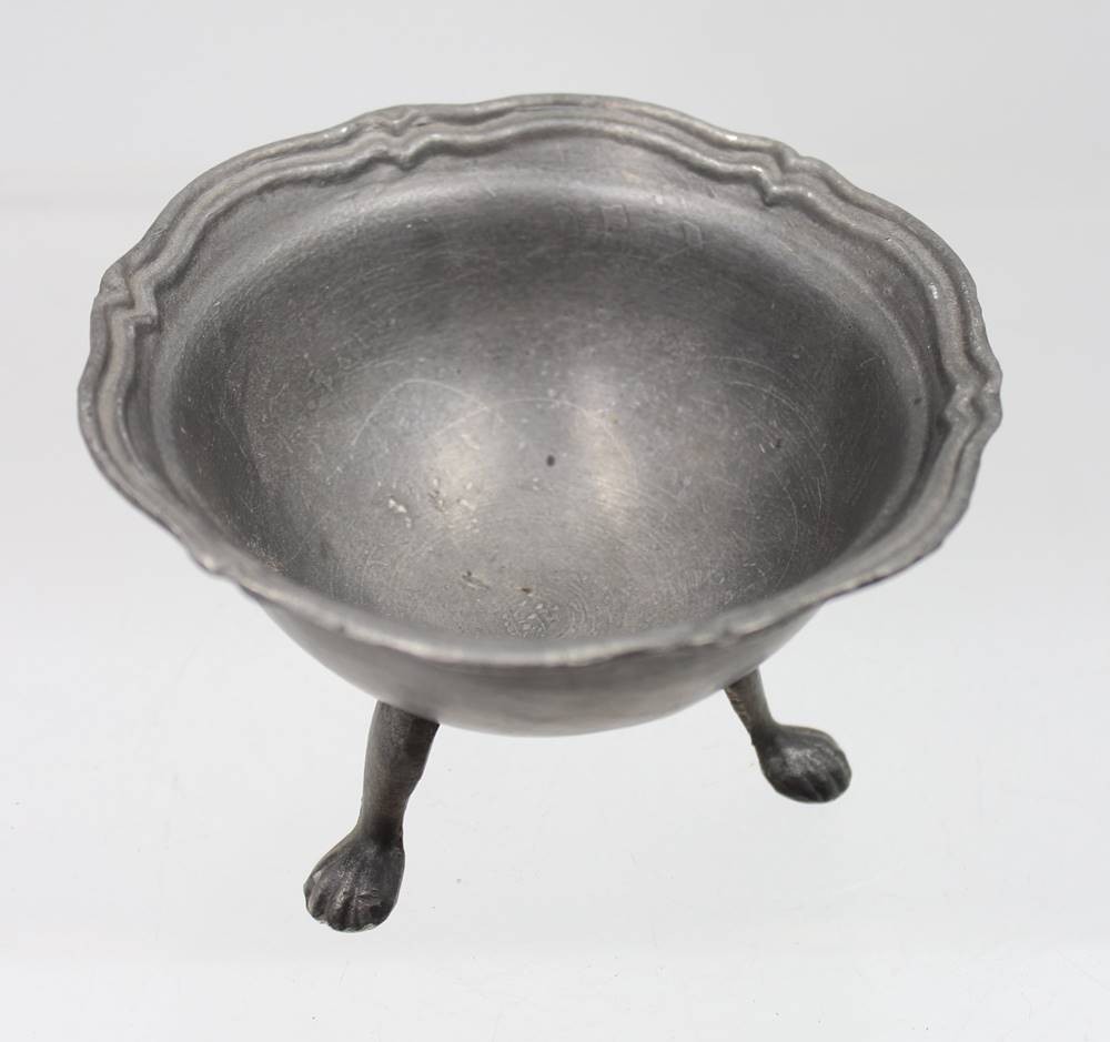Zinn-Schale auf 3 Beinen, gepunzt, ca. H-7,2cm D-11cm [1]