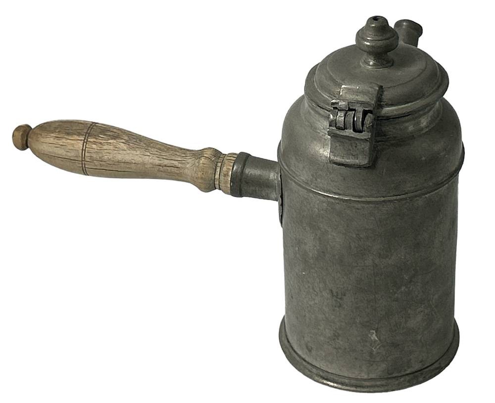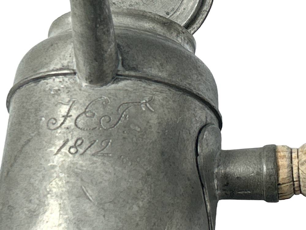 Zinn Schokoladenkanne mit Holzgriff, dat. 1812, H-17 cm, B-23 cm [1]