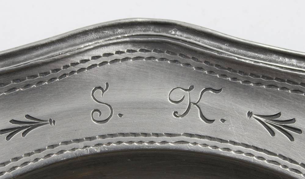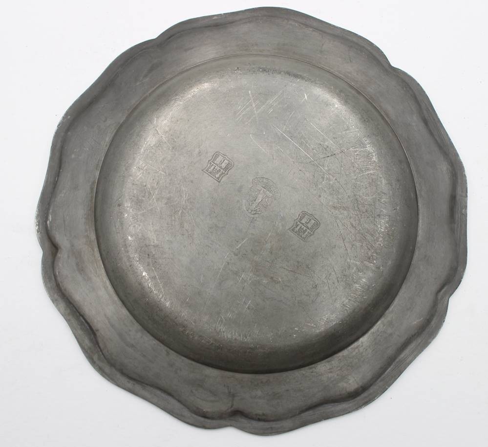 Zinn-Teller, Wappengravur, monogrammiert, D-23,5cm [1]
