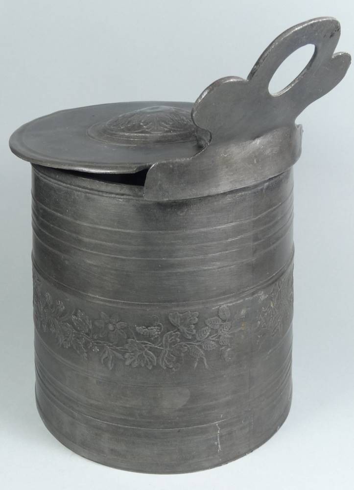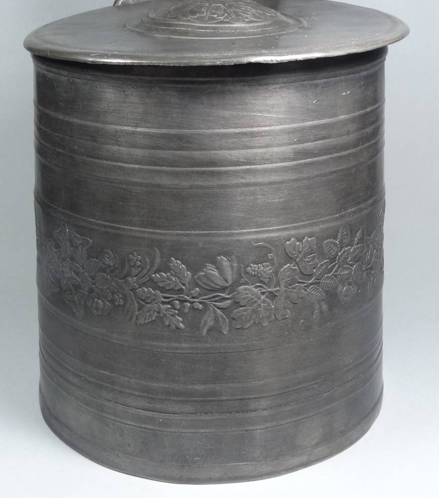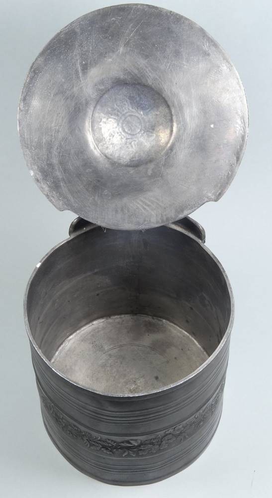 Zinn-Vorratsbehälter, umlaufend Blätterdekor, H-20 cm, D-13,5 cm [1]
