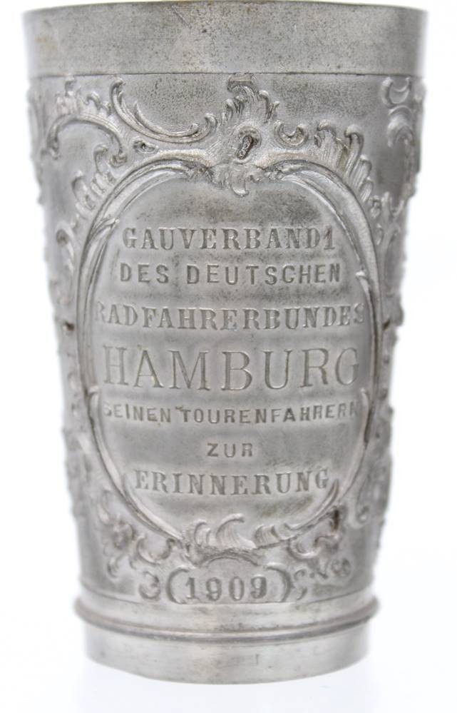 Zinnbescher, Hamburger Radfahrerverband, datiert 1909, ca. H-9cm [1]
