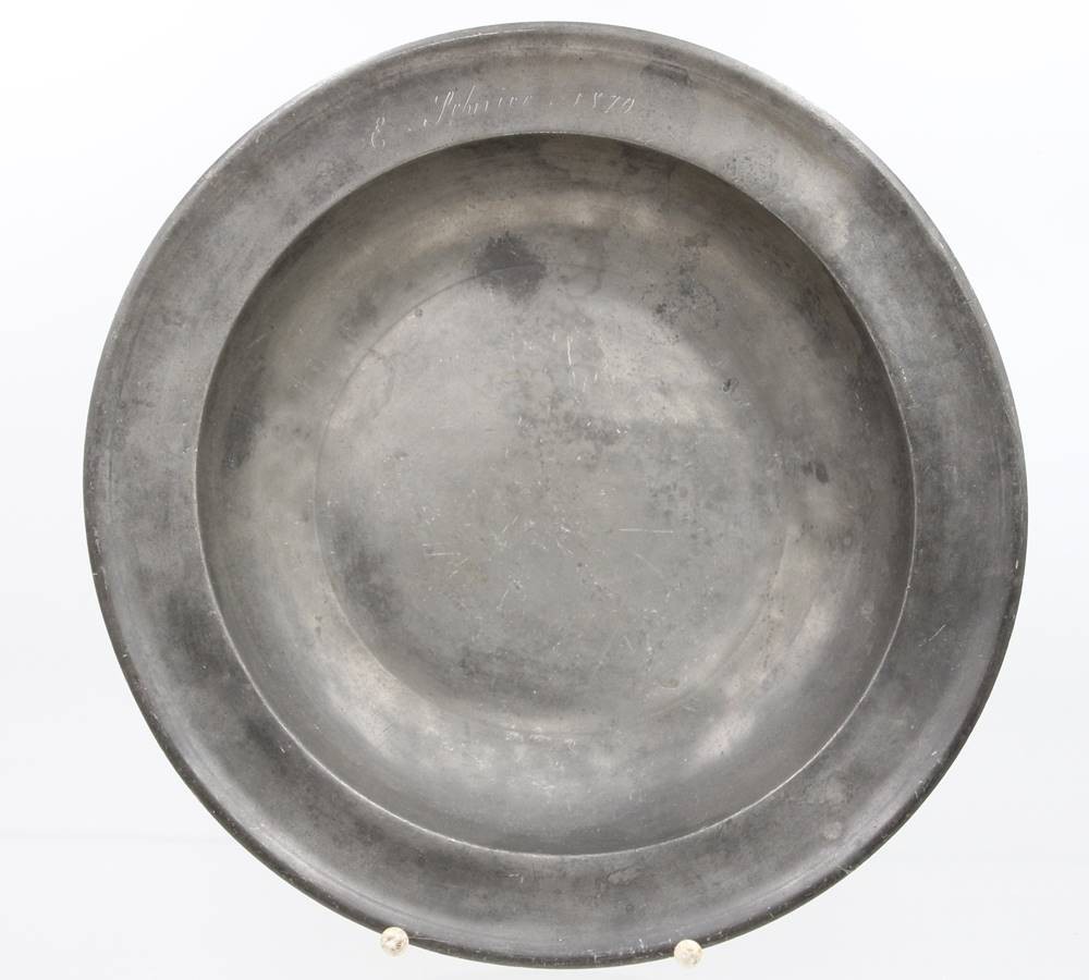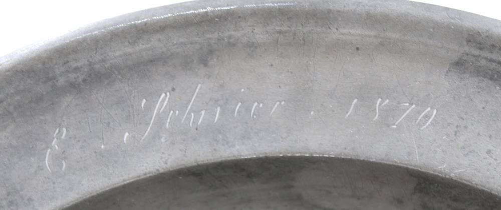 Zinnschale, Namensgravur und datiert 1870, ca. H-6,5cm D-34,5cm [1]